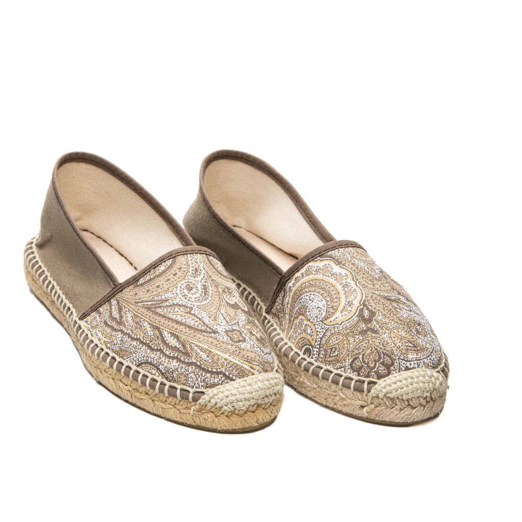 Alpargatas de mujer con suela de yute natural, de 2 cm de altura. Diseñadas y confeccionadas en nuestro taller, este modelo se caracteriza por sus colores serenos y convencionales.