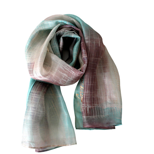 Hand-painted natural silk scarf, “QUIETNESS” model