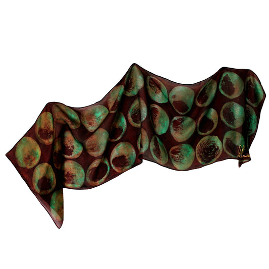 Hand-painted natural silk scarf, “PHOENIX AVE” model