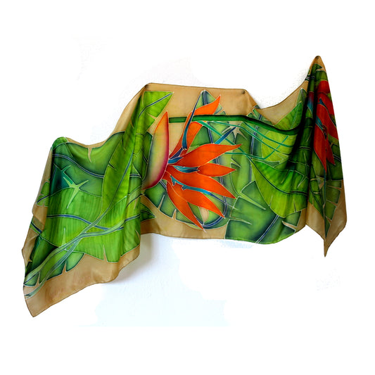 Hand-painted natural silk scarf, “FLOR DEL PARAÍSO” model