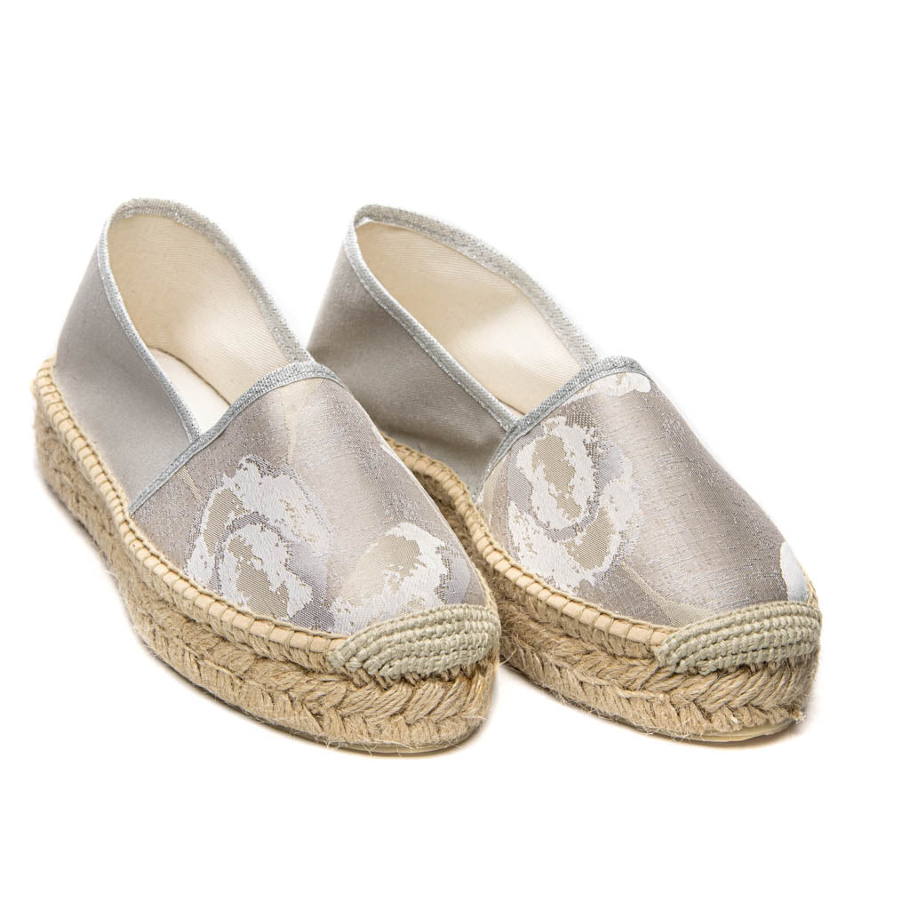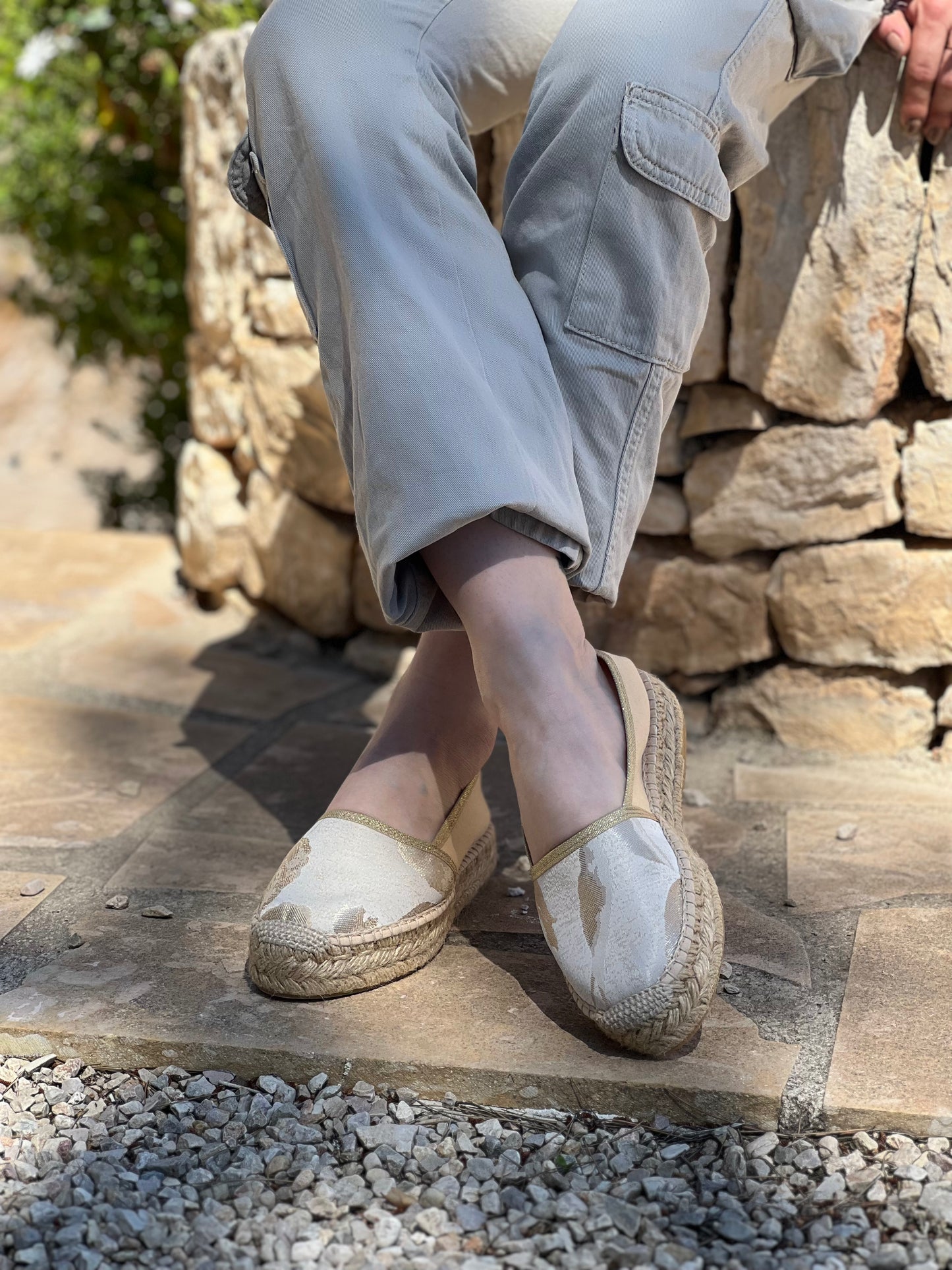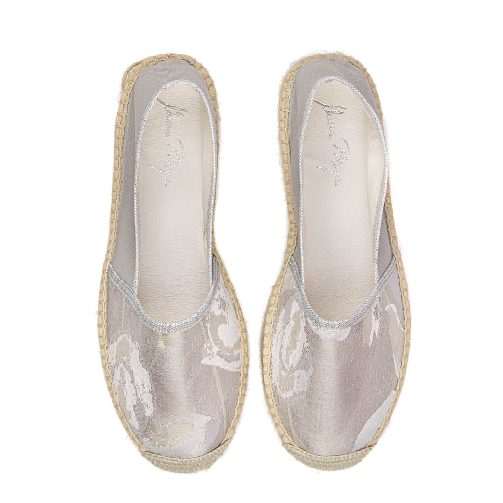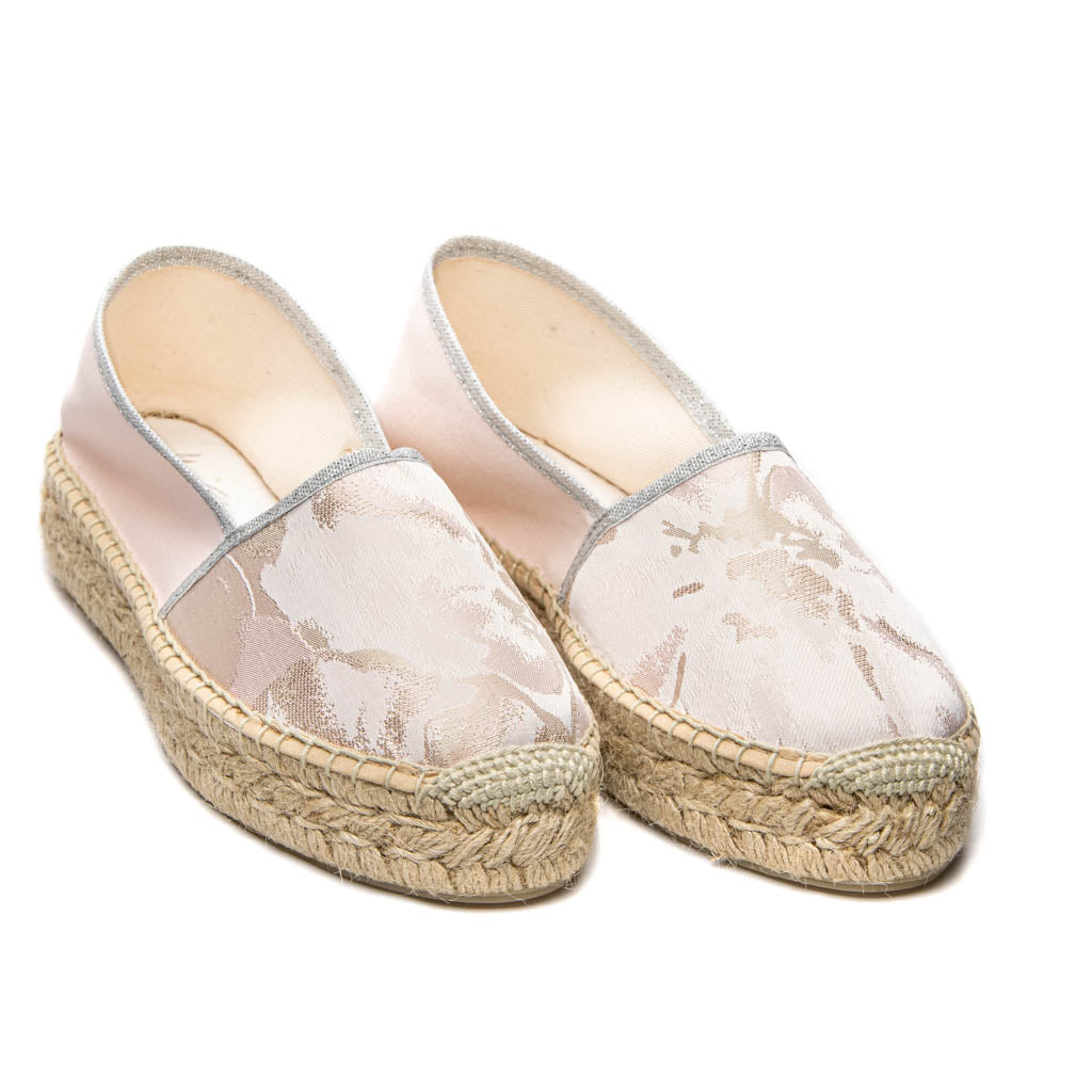 The heel cup, made of 100% OEKO_TEX cotton canvas , matches the tone of the upper, adapting to its color. In the Damascus Silver model, the heel is gray. The heel of the Damasco Oro model is in a soft cream color and in the Damascus pink model, we have incorporated a heel also in pink.