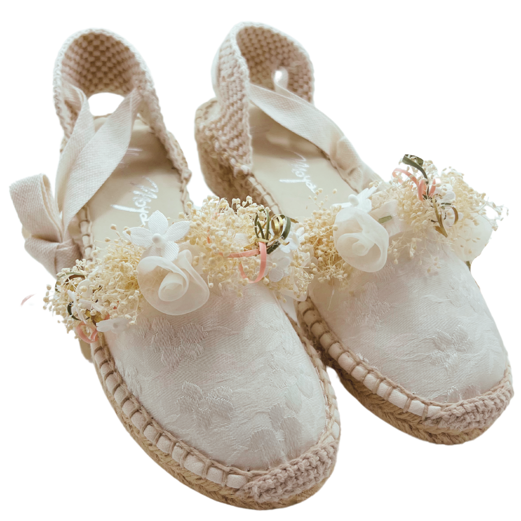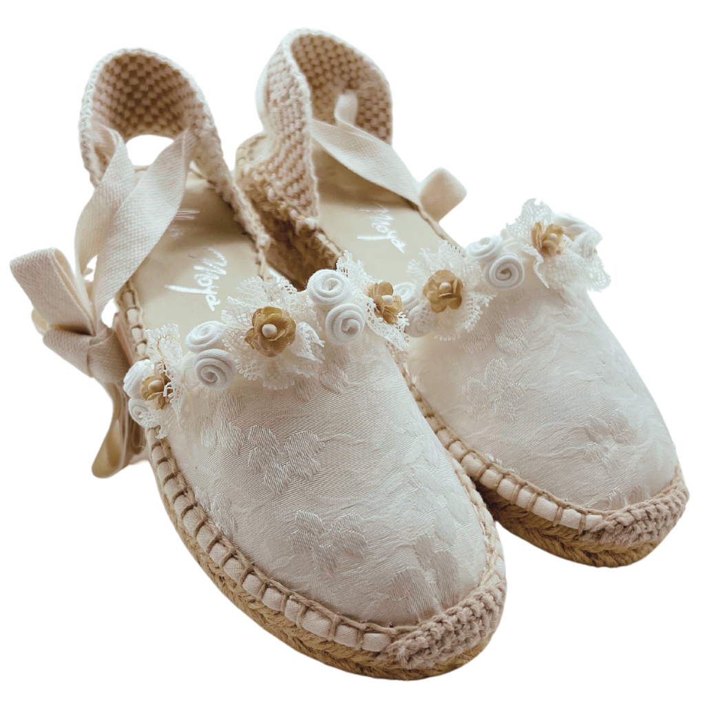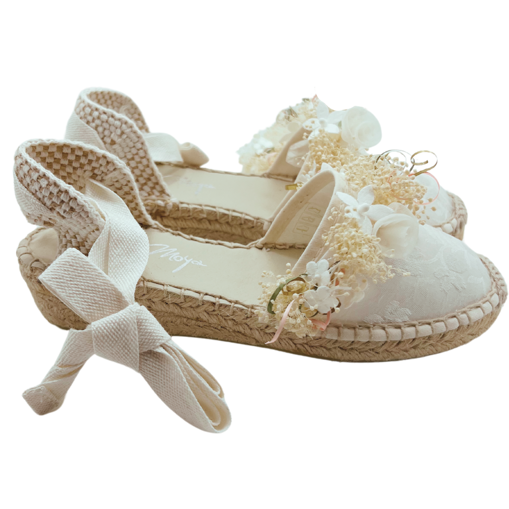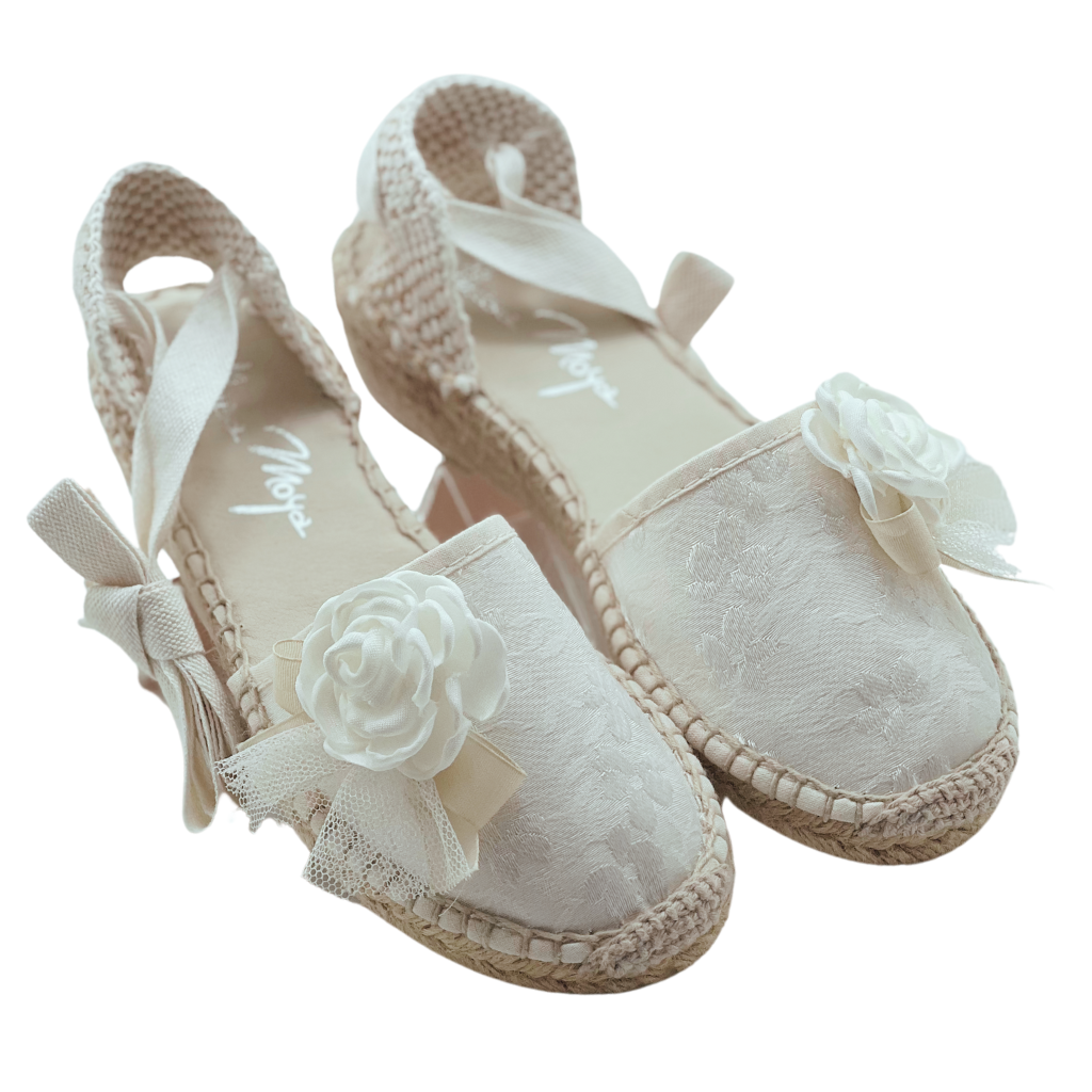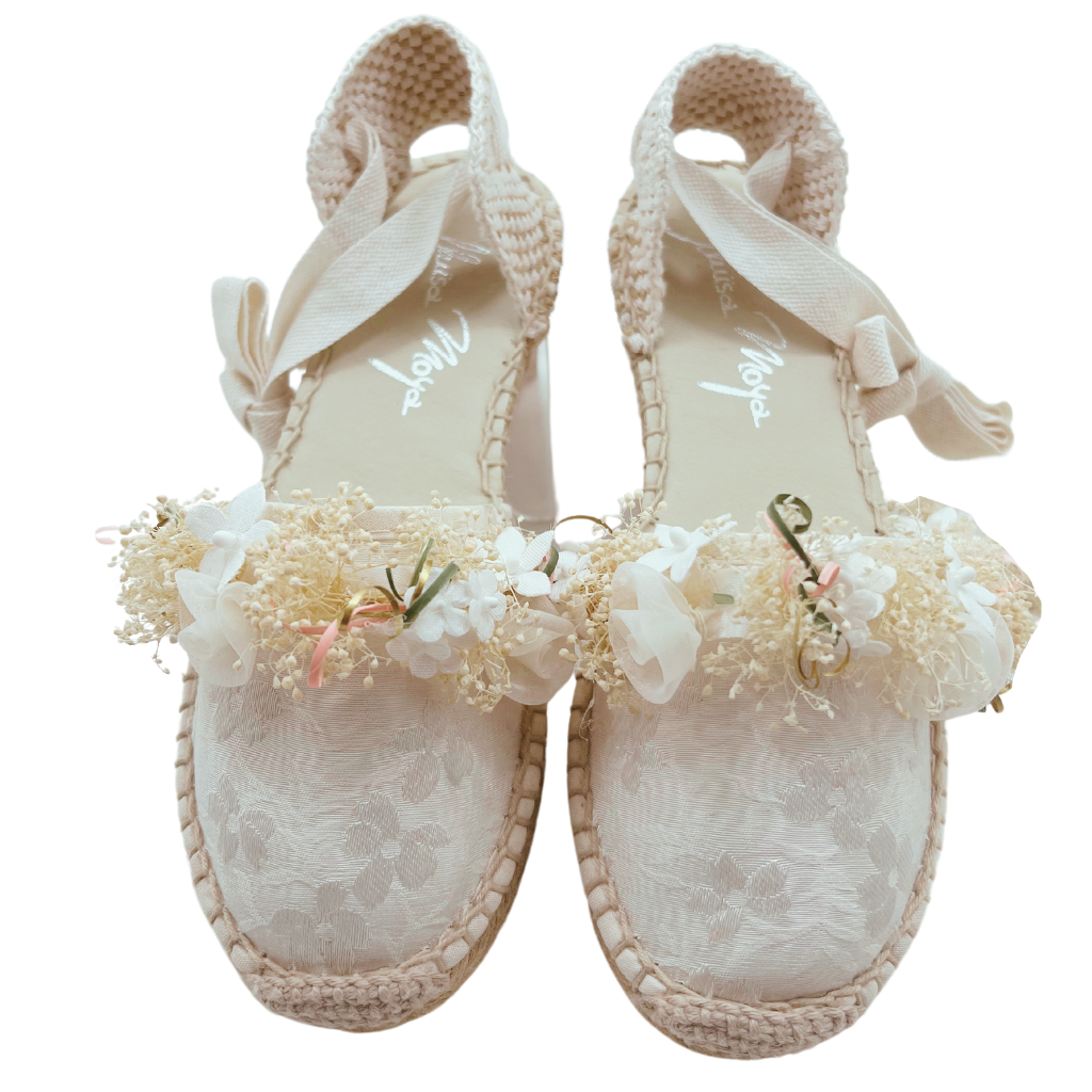 - Sole with 3 cm heel . Made of jute and protective rubber in natural color
