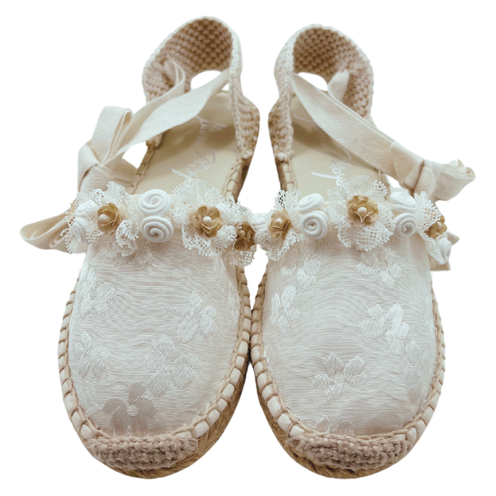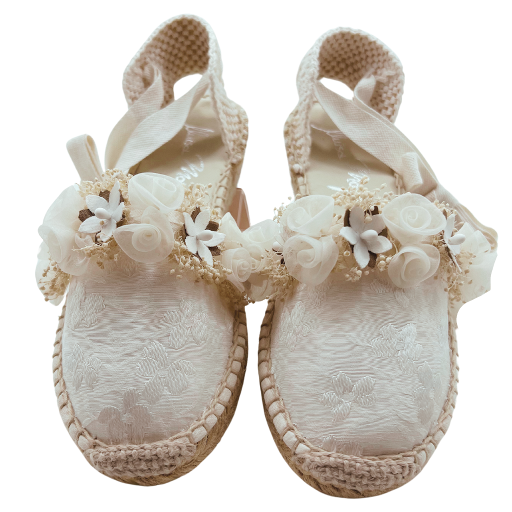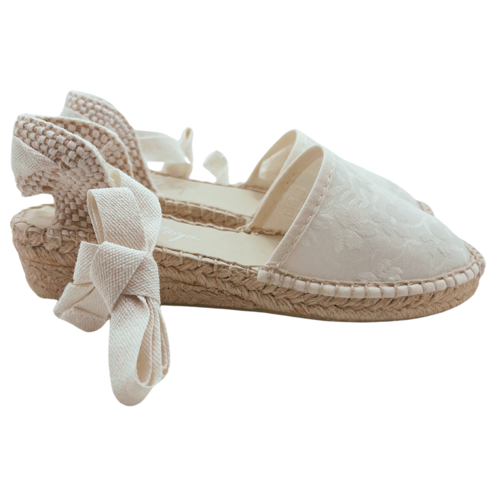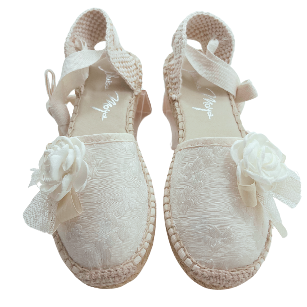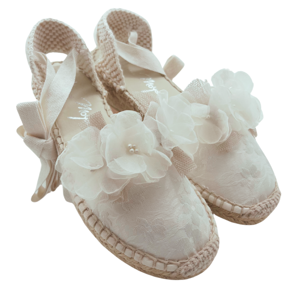 - Sole with 3 cm heel . Made of jute and protective rubber in natural color