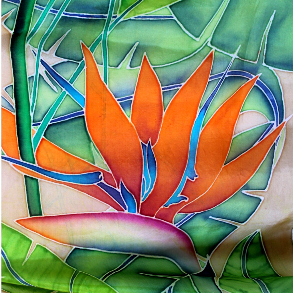 Hand-painted natural silk scarf, “FLOR DEL PARAÍSO” model