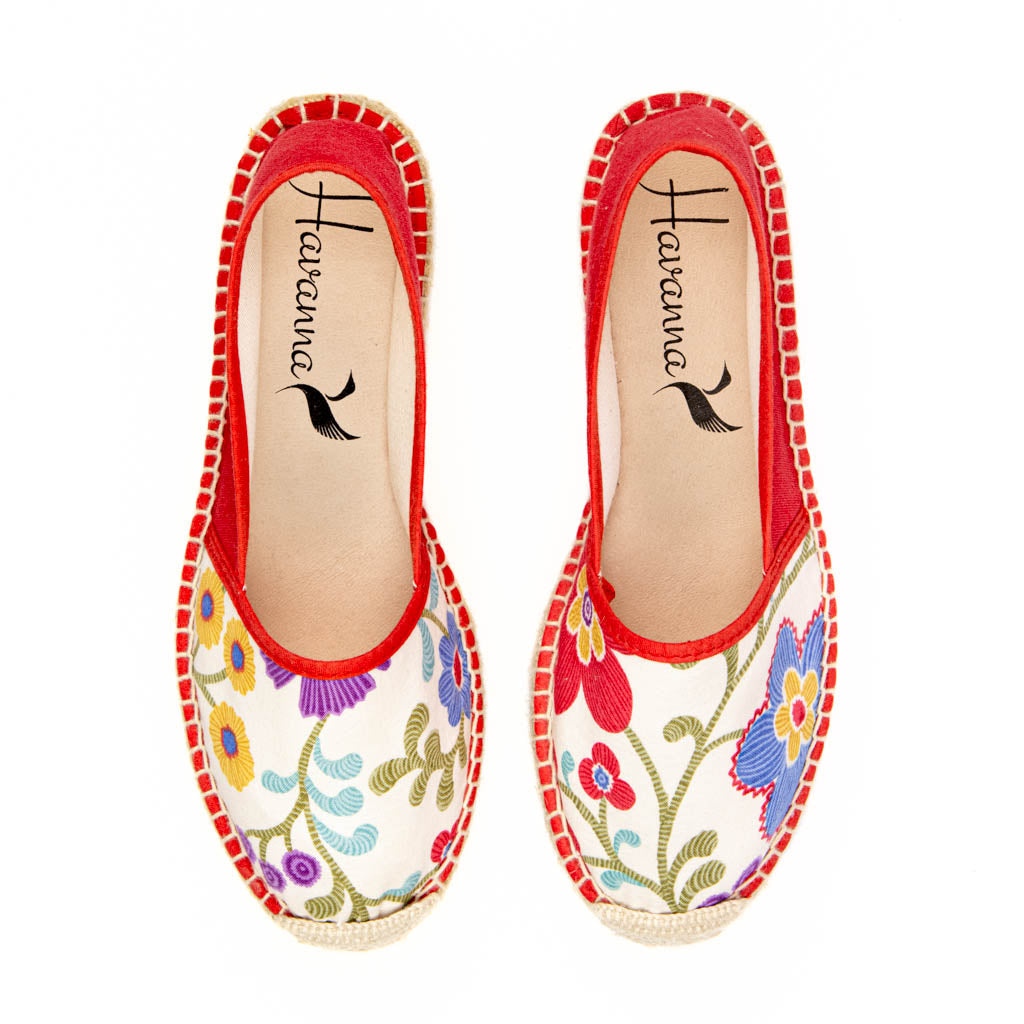 The Holland model is designed to capture the essence of spring, with its vibrant colors , floral print and renewing energy. The print of the upper with flowers in various colors has the peculiarity that it is different in each piece; so no two pairs are alike . Exclusivity guarantee.