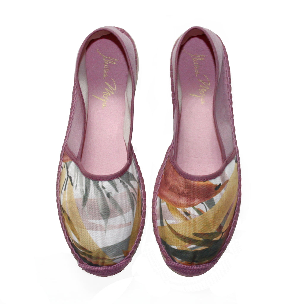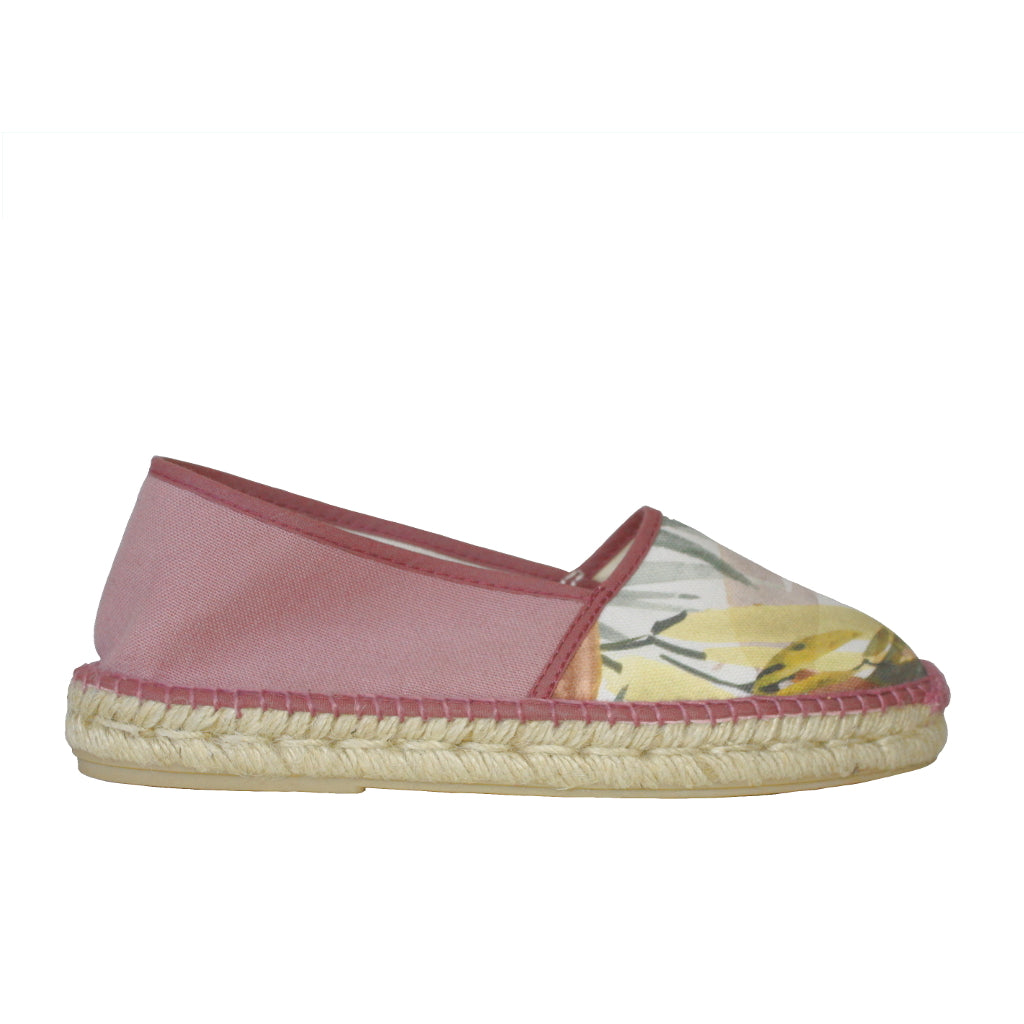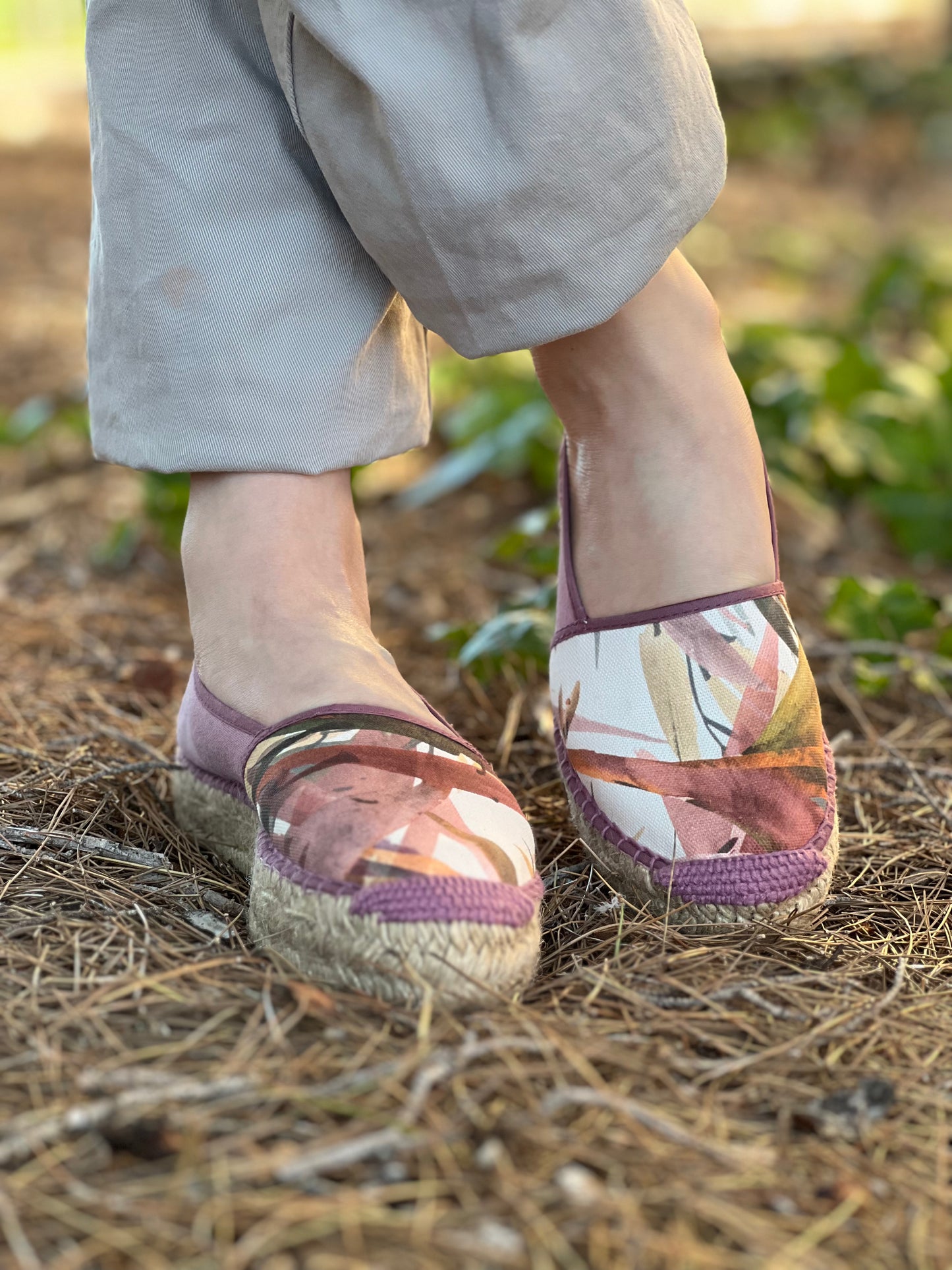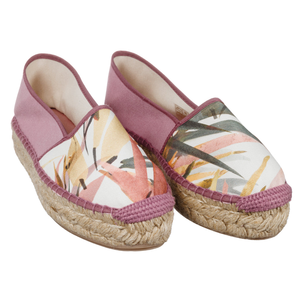 Handmade espadrilles with OEKO-TEX cotton canvas with a floral-inspired print.
