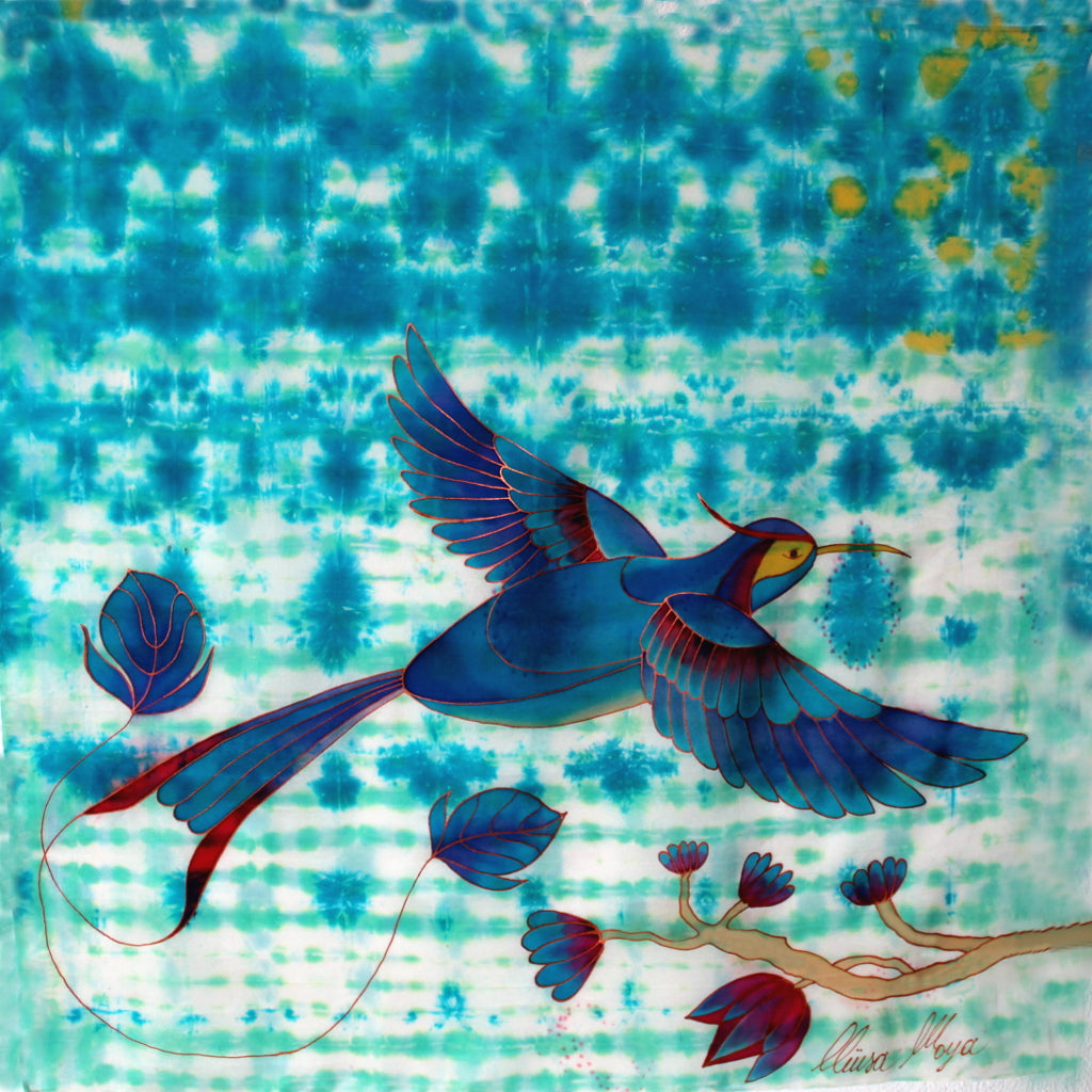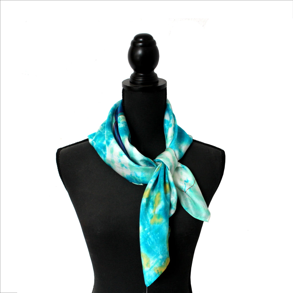 Hand-painted natural silk measuring 68x68 cm, with an exclusive design since each print is unique, so no two pieces are the same.