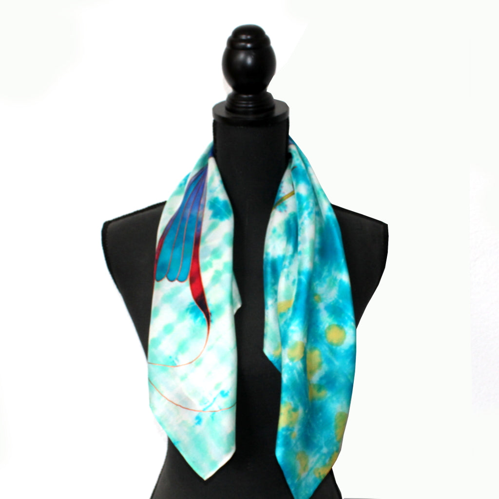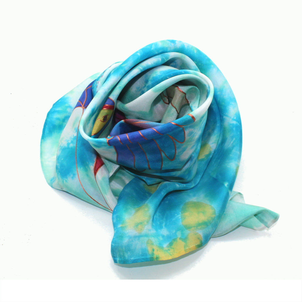 Hand-painted natural silk scarf, “PHOENIX AVE” model