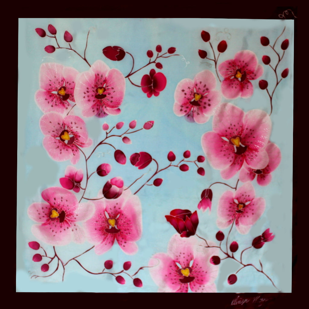 Pañuelo de seda pintado a mano "ORCHÍDEAS”