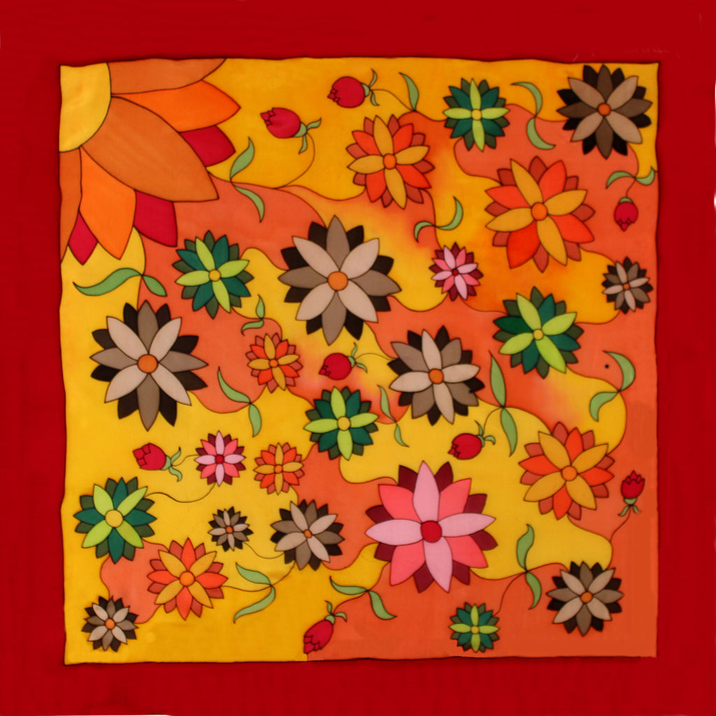 Hand-painted natural silk scarf, “SWEET SUMMER” model